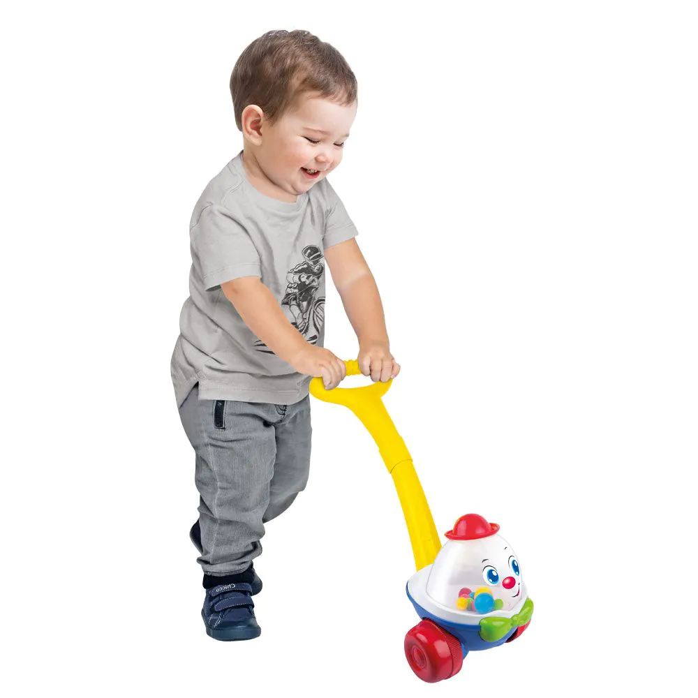 Топчета: Включва цветни топчета, които се движат и подскачат, докато детето бута играчката, създавайки забавен и интерактивен ефект.