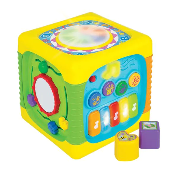 WINFUN Музикален активен куб 741 е вълшебна кутия на забавленията, която ще отведе вашето дете на пътешествие из света на цветовете, формите и звуците. Този куб е не просто играчка, а мултисензорен инструмент, който стимулира развитието на малките умове по няколко ключови области.